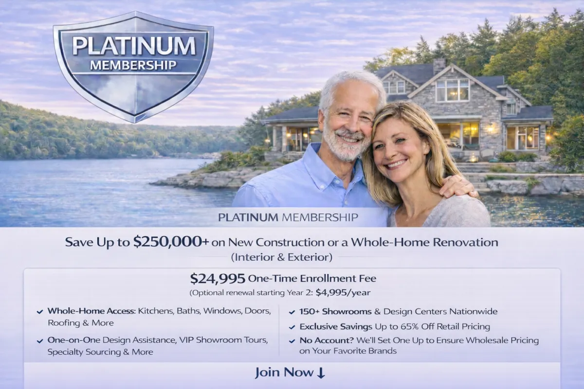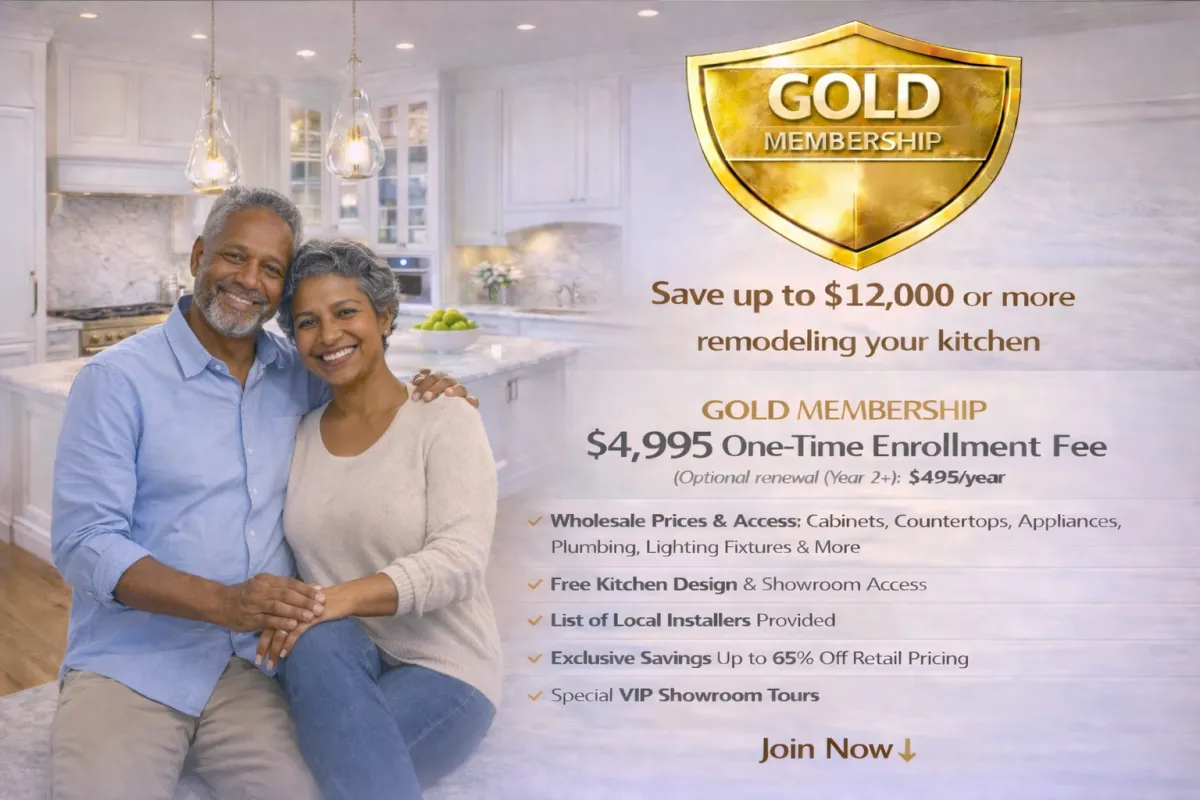 We are entirely sustained by the membership dues. Our focus is on the long-term relationships, not squeezing margins out of every cabinet or faucet you buy. That’s why we can pass along wholesale pricing instead of retail price tags. All rebates and monthly promotions go to the member not the Club. You pay what we pay and not a cent more. We receive NO kickbacks or incentives for your materials, designs, delivery or labor.