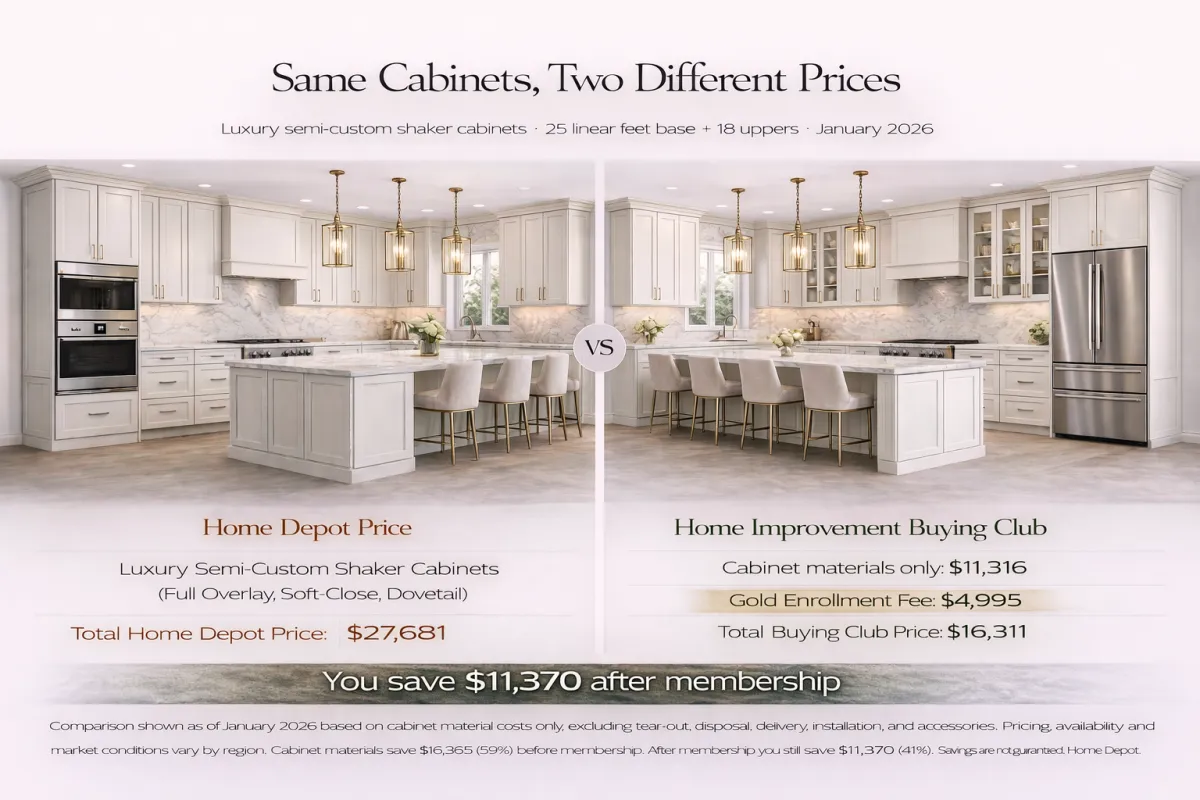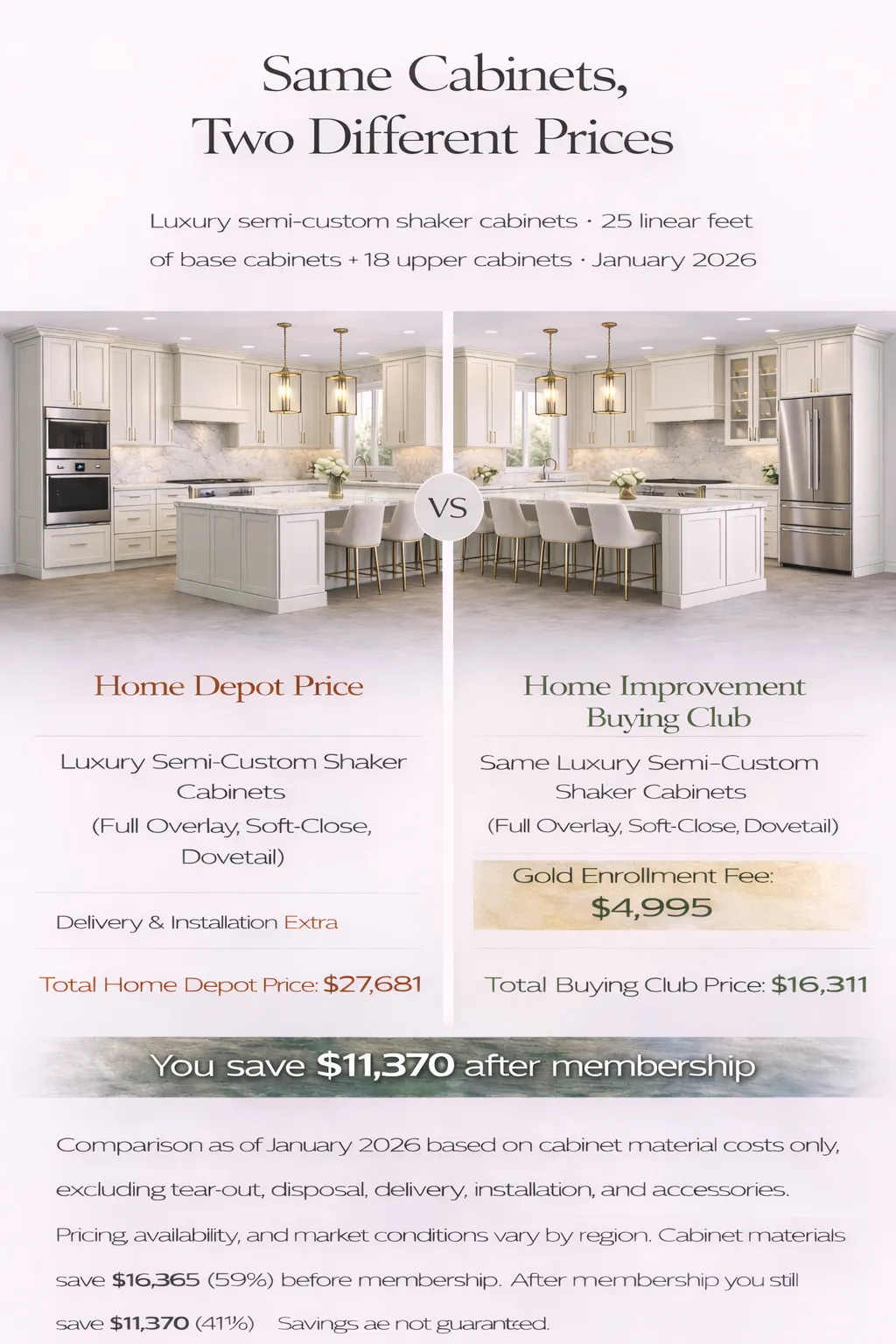 No. We’re a private buying club. Instead of making money by marking up products, our model is built around membership and helping you buy at wholesale prices on over 1 million items for in and around your home. Our biggest savings is on cabinets.